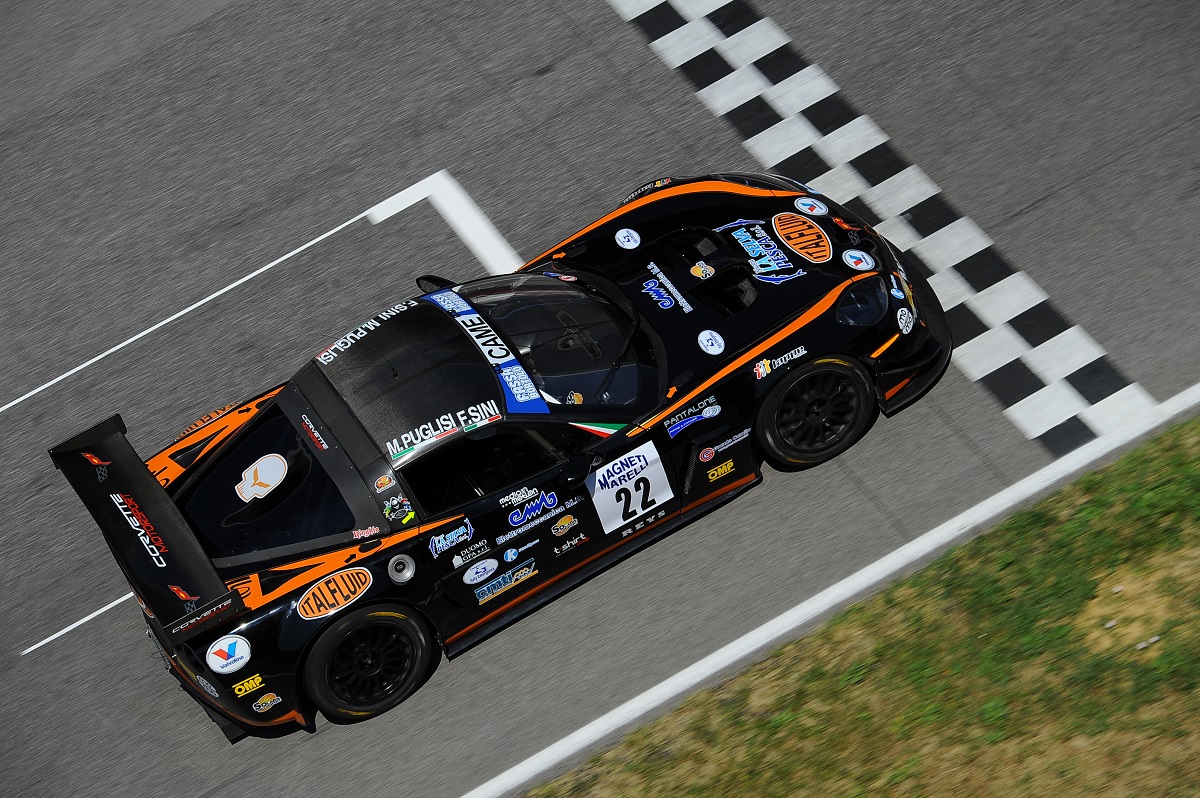 Le cose sembravano però volgere al meglio nella prima gara del weekend. Al via, sfruttando la potenza del motore della sua Corvette, Sini era riuscito subito a guadagnare quattro posizioni e a svoltare alla staccata della San Donato già in decima posizione, mettendosi subito alla caccia del gruppo di testa. Giro dopo giro, la nera Corvette della Solaris Motorsport ha continuato a guadagnare posizioni, fino a presentarsi all’apertura della finestra dei pit stop in sesta piazza. Sfruttando l’improvvisa entrata in pista della safety car – resasi necessaria per ripulire il tracciato da alcuni detriti – proprio a ridosso della sosta obbligatorio, il muretto box con un tempismo da manuale ha richiamato la vettura in pit lane per il cambio pilota, permettendo così a Puglisi di tornare in pista in seconda posizione. Al restart, arrivato esattamente a metà gara, Marcello ha subito provato ad attaccare la leadership di Zonzini alla staccata della San Donato, ma purtroppo i sogni di gloria del pilota lombardo sono svaniti qualche curva dopo, quando un attacco scomposto dell’Audi di Mapelli (poi penalizzato) lo ha mandato in testacoda e ha costretto la coupè americana ad una rimonta dal fondo. Sotto la bandiera a scacchi la Corvette è transitata in 12esima posizione, al termine di una gara in cui il pilota di Trescore Balneario ha dimostrato di avere il ritmo dei primi. Senza quei 30 secondi persi nel contatto, infatti, Puglisi sarebbe stato almeno nel gruppetto di piloti che si è giocato il terzo gradino del podio.
